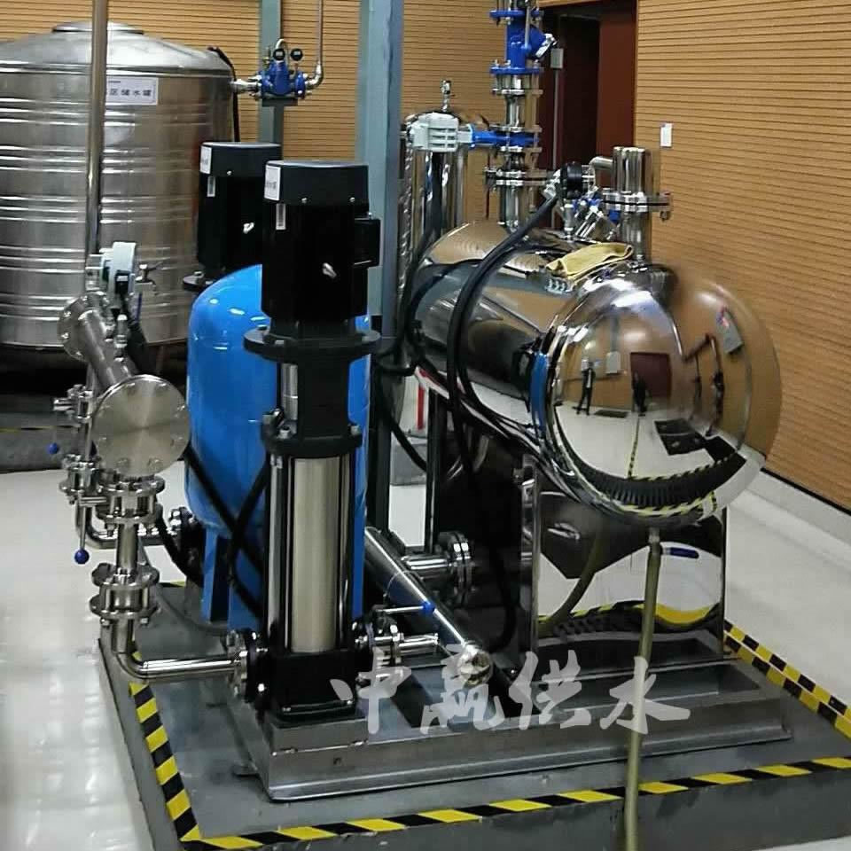 罐式變頻疊壓供水設備是一種新型的二次給水設備,由水泵機組控制設備、增壓穩壓設備三大部分組成。供水能力由水泵機組決定,系統的協調運行由控制系統控制,增壓穩壓設備主要作用是貯能保壓,應付少量供水以及正常的管道泄漏,同時也是實行自動控制不可缺少的一部分。大量用水時,管網壓力下降,水泵自動啟動供水。