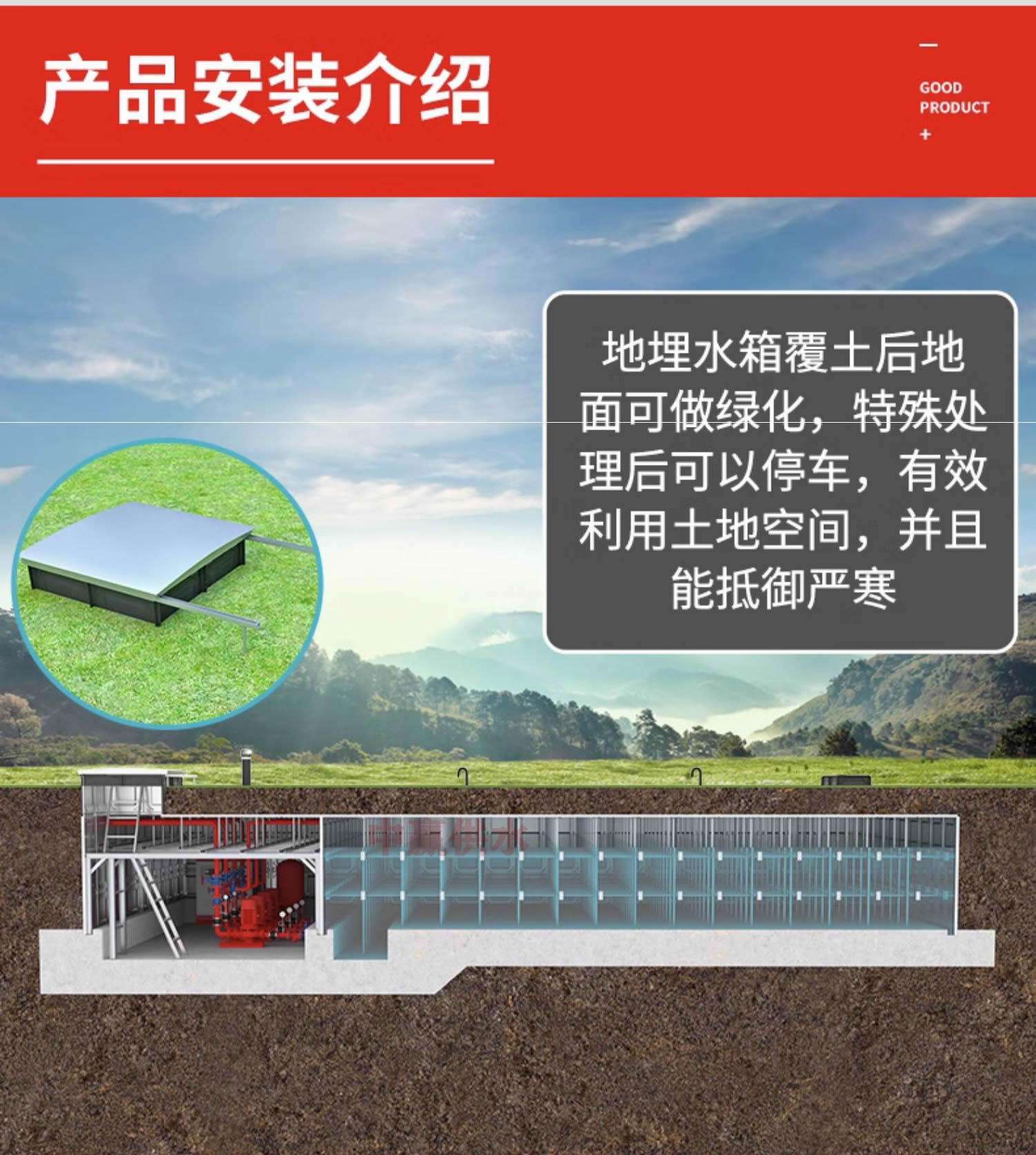 地下箱泵一體化無(wú)浮泵站的設(shè)計(jì)允許其直接埋入地下,不需要在地面或單獨(dú)設(shè)置泵房,也不需要安裝水箱底板,而是直接使用混凝土筏板作為水箱底板,這種設(shè)計(jì)節(jié)約了空間。它可以在城市等人口密集的地方使用,也可以在水資源缺乏的偏遠(yuǎn)地區(qū)使用,適應(yīng)性強(qiáng)?。
